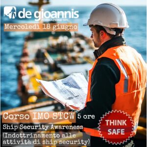 Per il giorno mercoledì 18 giugno 2025 presso la nostra sede è in programma un corso di Ship Security Awareness (Indottrinamento alle attività di security) per marittimi, della durata di 5 ore più esame finale. Per iscriversi è necessario compilare in ogni sua parte il modulo di adesione e spedirlo via e-mail a formazione@degioannis.it. I corsi verranno interamente svolti presso la nostra sede di Elmas e ricordatevi che sono a numero chiuso per cui.. affrettatevi!