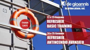 I corsi di Aggiornamento Sopravvivenza e Salvataggio e Aggiornamento Antincendio di base utili per rinnovare il pacchetto del “Basic Training”, ciascuno della durata di 8 ore, sono programmati per i giorni lunedì 22 e martedì 23 Gennaio 2024. L’ Aggiornamento dell’Antincendio Avanzato, della durata di due giornate, seguirà nei giorni mercoledì 24 e giovedì 25 Gennaio 2024.